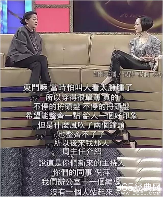从倪萍当时的落落大方和艳光四射,很难想像因为央视条件不好,那一年日本明星翁倩玉到央视跟她一起主持节目时,翁倩玉有单独的化妆间,倪萍却要在大树下裸着换衣服。倪萍说,委屈到了嗓子眼。