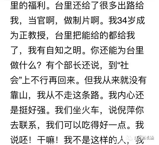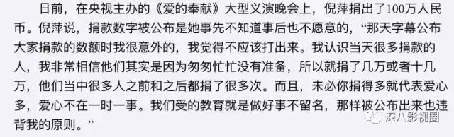 只能说,50年代出生的倪萍由于文化和见识局限,许多观念已经落后于时代却不自知。但是她并非那种煽动他人牺牲奉献的伪君子,而是“传统女性美德”的真心信奉和身体力行者。