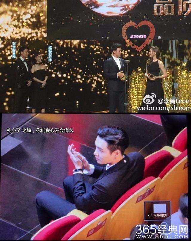说到这里,我们要心疼张艺兴三分钟,因为主办方不知道是出于什么目地,给张艺兴安排了一个全方位虐狗VIP专座,左边是罗晋唐嫣,后边是贾乃亮李小璐