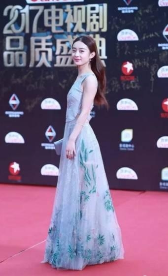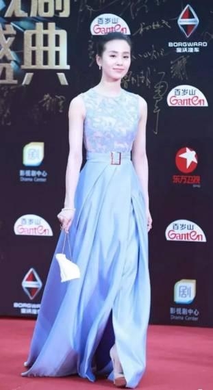 秉承了以往优雅恬静的风格,这次刘诗诗选择的是一条蓝色的拖地长裙。