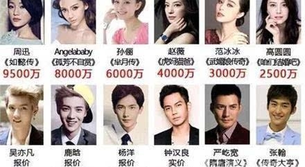 近日,很多明星演电视剧演电影的片酬相继曝光,Angelababy杨颖片酬高达8000万,周迅片酬9500万,鹿晗片酬1个亿,吴亦凡片酬1.2个亿,惊呆了很多网友,同时让业内人士也饱受片酬之苦。