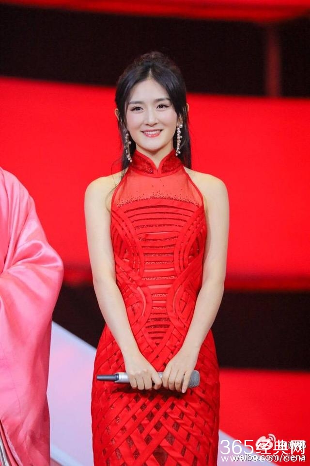 红色礼服的娜娜气场又高了一个度,高领中间的小V口也是别有心机,让娜娜的下巴显得又小又尖