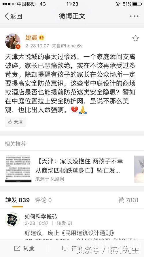 相关链接报道“天津大悦城发生惨剧,两个2、3岁的孩子从四楼天井跌落