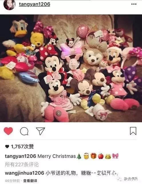 刚刚过去的圣诞节,唐嫣在个人社交媒体上晒出米老鼠唐老鸭等一大堆迪士尼公仔照。