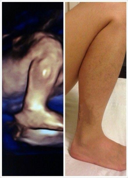 2013年,已有五个月身孕的霍思燕在微博中晒出了疑似其腹中宝宝(就是嗯哼童鞋啦!)的腿部B超图,并与老公杜江的腿做了对比,笑言两人都是粗腿,感叹遗传基因好神奇。