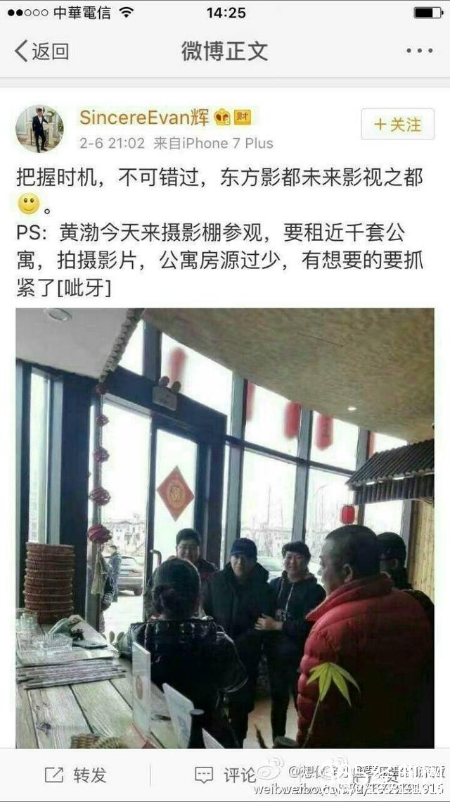 说是黄渤来摄影棚参观,要租近千套公寓,数量太多导致房源都不够了