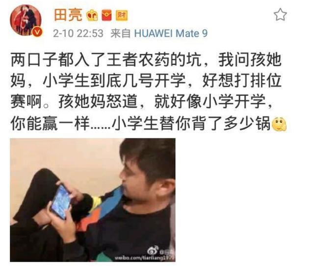 田亮曾发微博,称两口子都迷上了王者荣耀