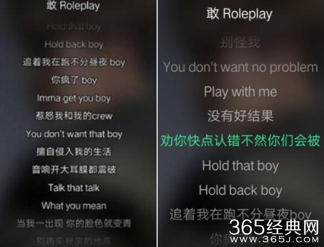 随意感受下这歌词是有多简单直接!“躲藏在暗处算计”“不可能跟的上我走的步 妄想能把我抓住”“Play with me 没有好结果”“别再来我家的地库 再被我们见到就不会饶恕 嘴里没一句是truth 再尝试这么做我就给你嘴巴上锁”