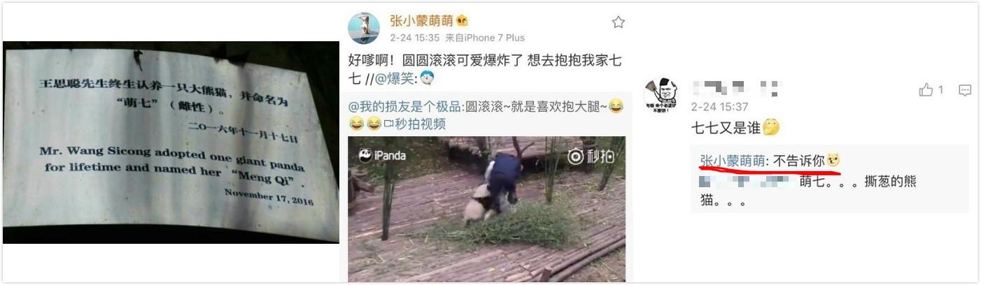 2月24号张小蒙在网上盖章了王思聪去年认养的熊猫“萌七”是自己的七七,宣示主权。这速度,难道豆得儿又下线了?