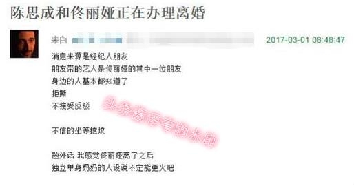 今早有网友爆料佟丽娅和陈思诚正在办理离婚,称消息从经纪人朋友那里得来,不接受反驳,坐等挖坟。