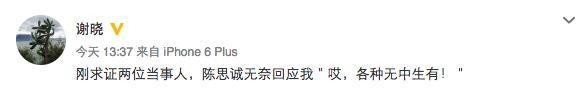 有媒体人求证陈思诚方面,他回应称“无中生有”。
