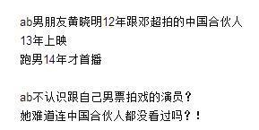 大家都很疑惑啊:baby你那个时候还是男朋友的黄晓明还和邓超一起拍了《中国合伙人》,难道你都不看自己男朋友演的电影吗?