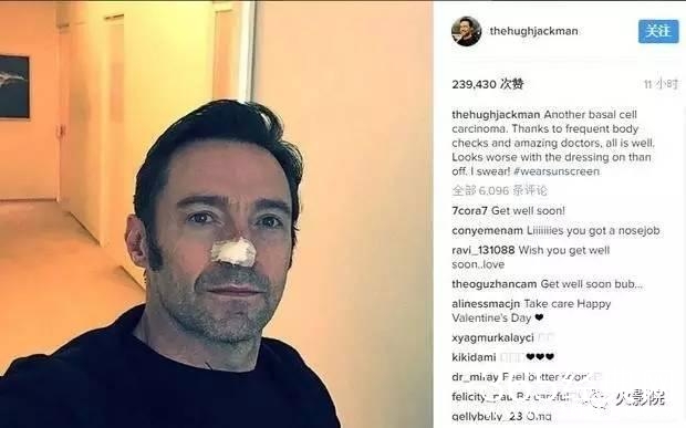 今年2月13日,狼叔在Instagram上传了自己鼻梁贴了纱布的照片,附言:“又一个基底细胞癌(Basal cell carcinoma),这次病变的发现要归功于定期的健康检查,感谢优秀的医师,一切都好!盖上纱布看起来很糟,但掀开后没那么严重,我发誓!”