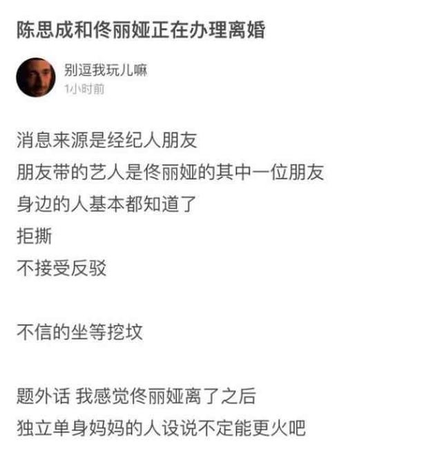 根据圈内的知情人士爆料称,佟丽娅目前正在与陈思诚办理离婚以及财产分割的相关手续。