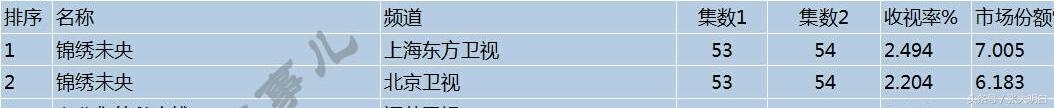 而在最高收视上锦绣未央双台破二,最高2.4,女医单台破二,三生未破二