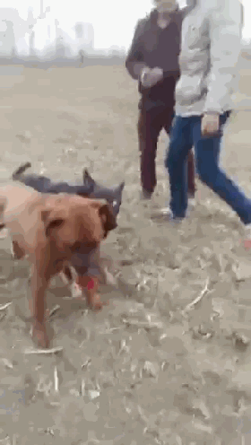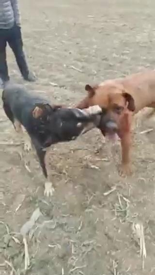 男子家在农村,养了一只比特犬(就是打斗很牛的那种),可以说在他们那基本没有对手,这天听到朋友说当地有只串串很凶猛(就是中华田园犬),听到这话后他立马来了兴趣,于是就让朋友带路,牵着自己的爱犬比特,来到了那户人家门前,就如同叫阵一般,不一会那户人家出来一男子,两人便商讨起来,一番商讨过后,男子就回家牵出了自家的串串,对比特有了解的朋友也应该知道,它见到狗表现的异常兴奋,恨不得马上过去打斗一番,气势上很强悍,可串串也没认怂,不停的对着它吼叫,路人听到狗狗的吼叫声,也好奇的赶过来观看,两人趁着狗狗们都处在兴奋的状态下,便互相松开了爱犬,两只狗狗就这样扭打在了一起,比特的主人见他的狗略占上风,就不停的给它加油呐喊。