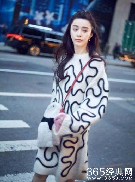 范冰冰穿着一件长款黑色条纹毛衣,发型的设计看起来十分的减龄,加上粉色的手机壳和毛绒包包,画面看起来很粉嫩,潮流时尚。