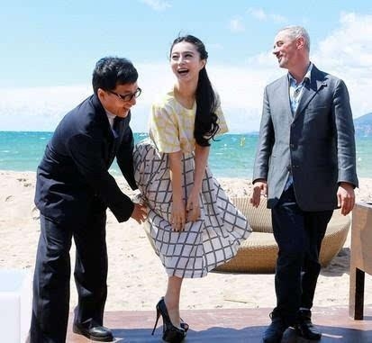 海风太大,裙子飞舞,成龙热心帮忙拉裙子,范冰冰笑的很开心,但是引来很多网友的诟病,认为两人的动作实在是有些猥琐。