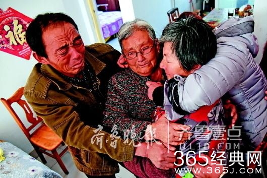 袁洪臣左手摸着老伴孙瑞娟的头,右手紧紧拉住她的手,将已经26年未谋面的“孩她妈”领回家。