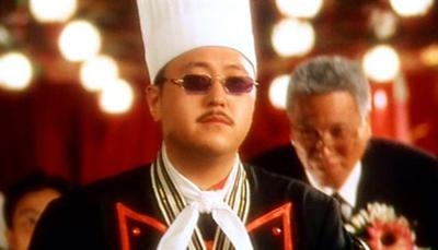 星爷对他的作品很满意,看来这小子不错啊!于是第二年,星爷请他帮忙为电影《唐伯虎点秋香》编剧,大家都知道这部戏后来非常成功,谷德昭自然是功不可没,他不仅编剧也还在剧中饰演的是那位和星爷对对联的“对穿肠”,如下图,虽然出场时间很短,不过那个剧情却是十分经典,至今印象深刻!