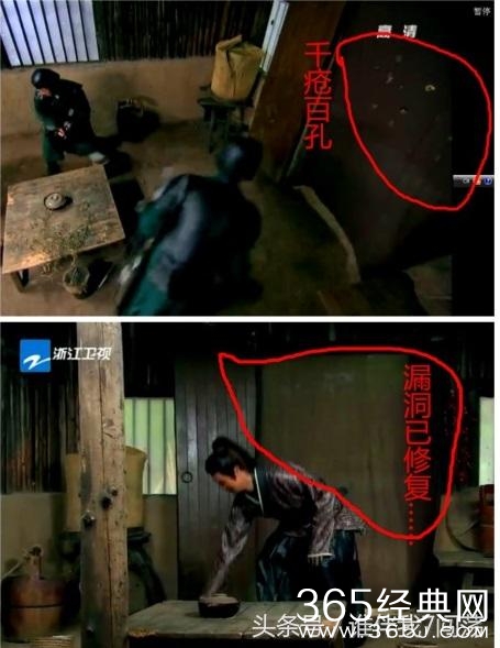 《王的女人》第19集,前一秒门帘上还有好多箭孔,后一秒田亮冲进来时,门帘竟然完好无损