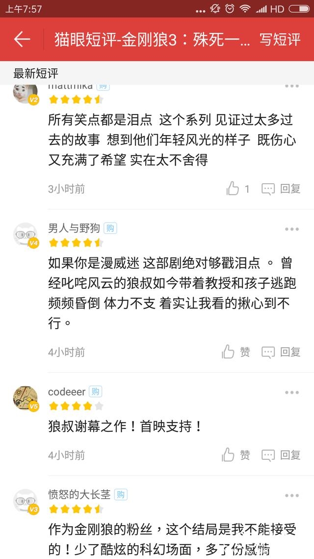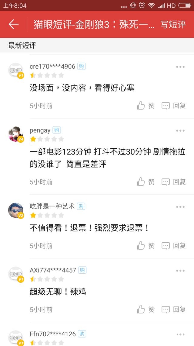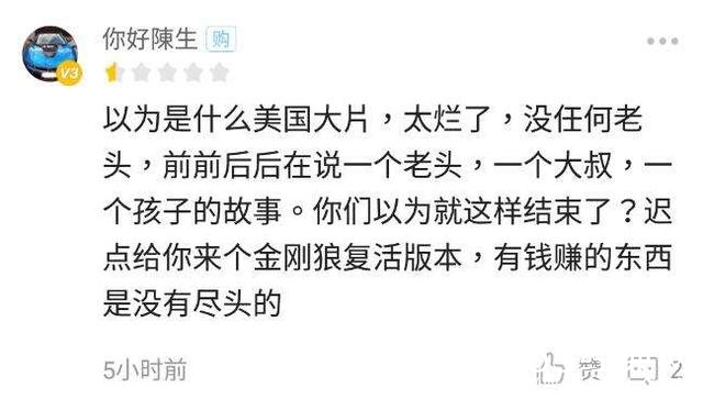 差评很少,则是与预期的“美国大片”不符,少了酷炫的科幻场面,打斗戏份不够多,与系列太不一样。