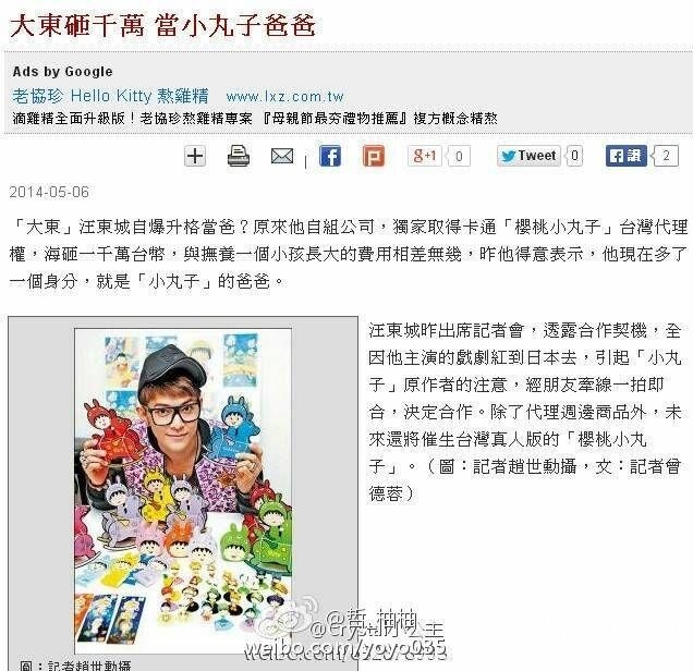 汪东城喜欢Cosplay是出了名的,有时候还会参加动漫展。早几年,汪东城受卡通《樱桃小丸子》作者樱桃子青睐,取得“小丸子”商标台湾独家代理权,与3名股东投资1000万元成立东友企业有限公司,处理小丸子相关事业。