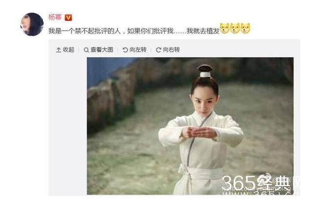 然而杨幂则幽默回应::“我是一个禁不起批评的人,如果你们批评我,我就去植发。”