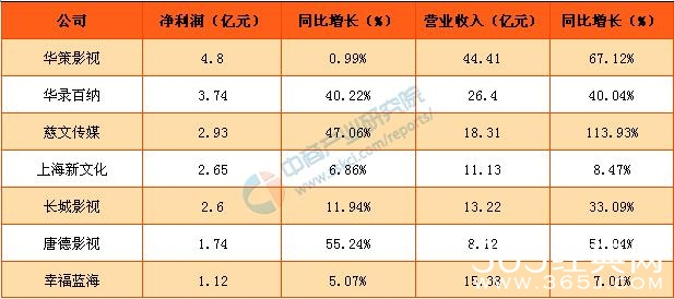 2016年电视剧领域上市公司营收与净利润增速统计