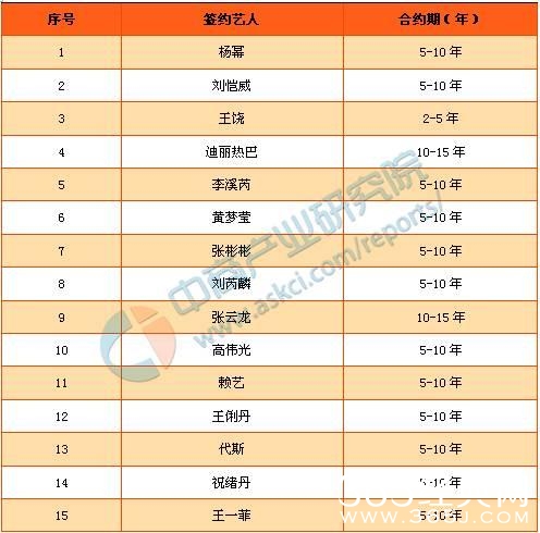 嘉行传媒公司已签的全约艺人及合约主要情况