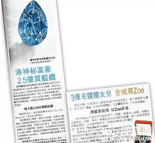 在2014年,刘銮雄豪掷2亿多投得3枚巨钻赠太太吕丽君母女,并以女儿“The Zoe Diamond”之名,该蓝钻更刷新了蓝钻拍卖及每卡单位价的两项世界纪录,轰动国际拍卖场。