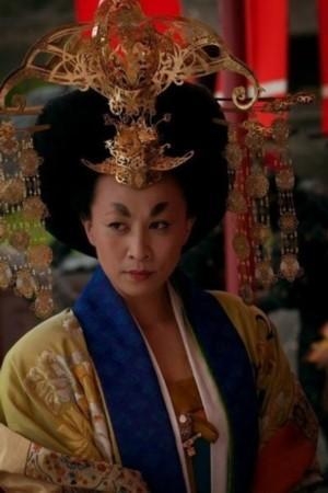 同样是挑战武则天,刘嘉玲也同样采用了夸张头饰,不同于刘晓庆的牛魔王造型,刘嘉玲把自己变成了算命先生。