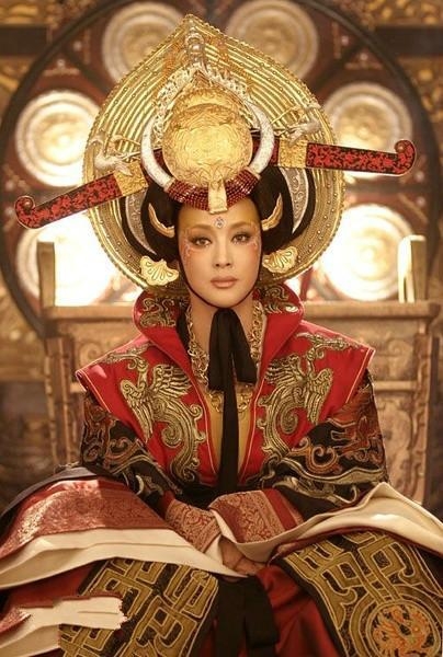 刘晓庆扮演武则天不论是演技还是颜值都堪称经典难以超越,但这造型有些过于霸气,刘奶奶秒变牛魔王。