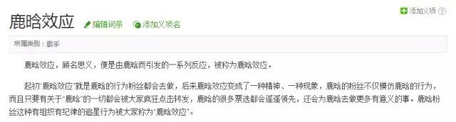 鹿晗的影响力不是一般哦,毕竟百度词条有了“鹿晗效应”一词,指的是只要关于鹿晗的一切就会被大家疯狂点击转发。