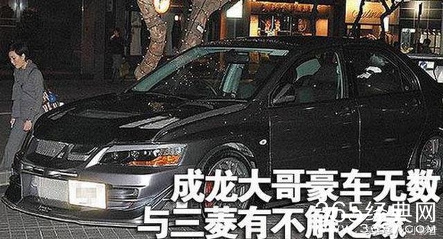 成龙大哥最值得称道的当属全球唯一成龙专用三菱Evo.8 MR,车的轮圈盖、地毯、表板等处都印有龙字徽章,三菱还为成龙制造过包括Colt Turbo、Starion等在内的多款专用车型。