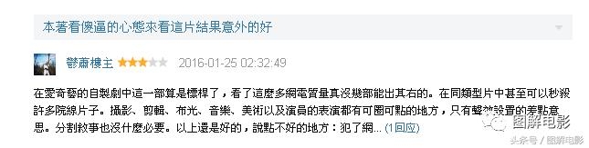不论从演员、布景、镜头、剧情哪个角度来说,该片的质量都高过其他网剧!