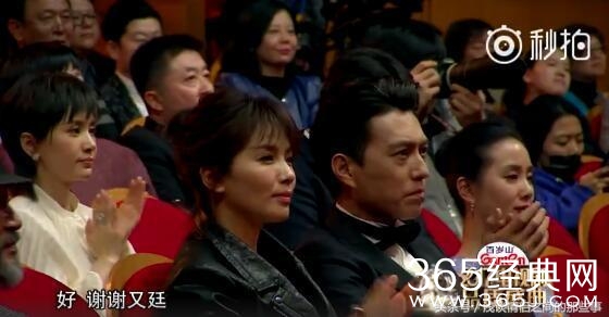 只是相对于台上,台下似乎比较热闹。罗晋唐嫣胡歌坐一起。