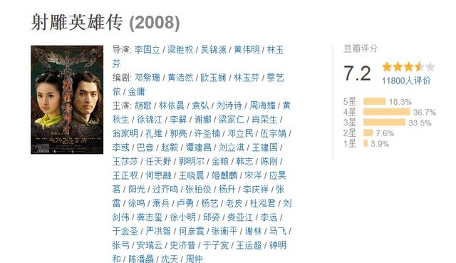 如果上一步没看过,那么08年的《射雕英雄传》大家应该有看过吧,当时都是唐人电影演员,胡歌,林依晨,看了卡司也是很强大。