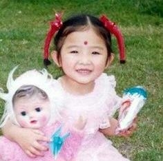 米露虽没有大红大紫,但她的星味是从小到大的,小时候化上妆容拍摄写真的她已经很有范。