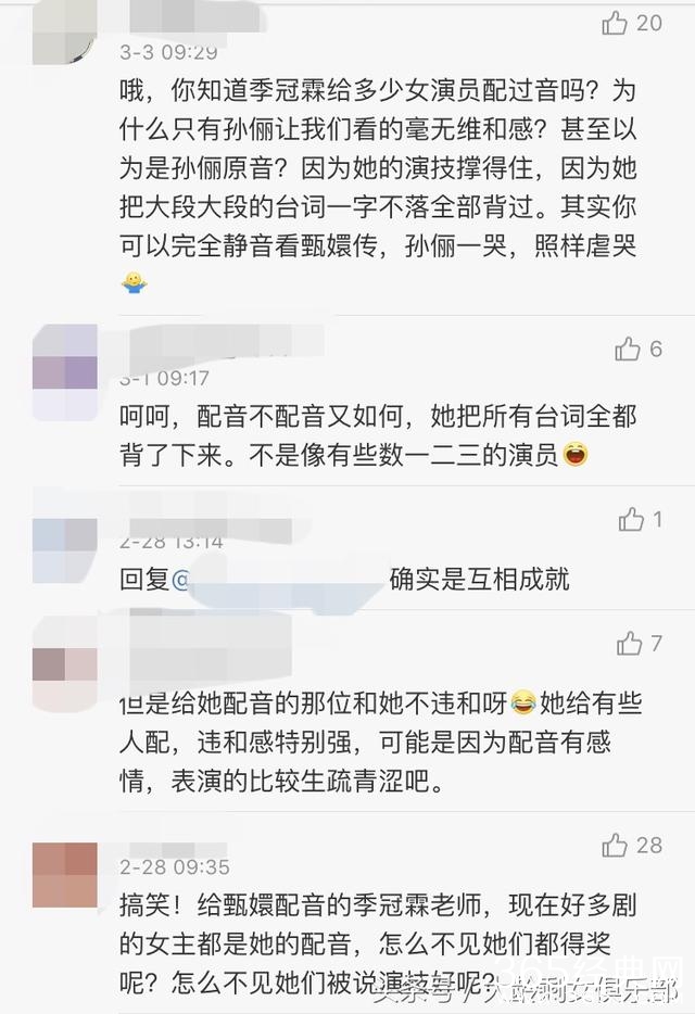 但是评论里却有人表示,孙俪完全是被配音撑起来的吧!明明是季冠霖成就了孙俪!