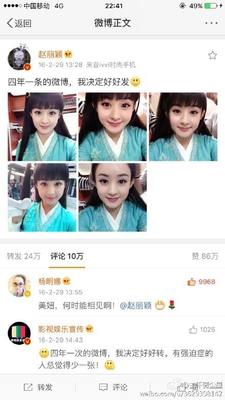在新版《神雕侠侣》中,赵丽颖饰演穆念慈,而张雪迎则饰演郭襄,虽然并没有对过戏,但是微博曾经有互动呢!