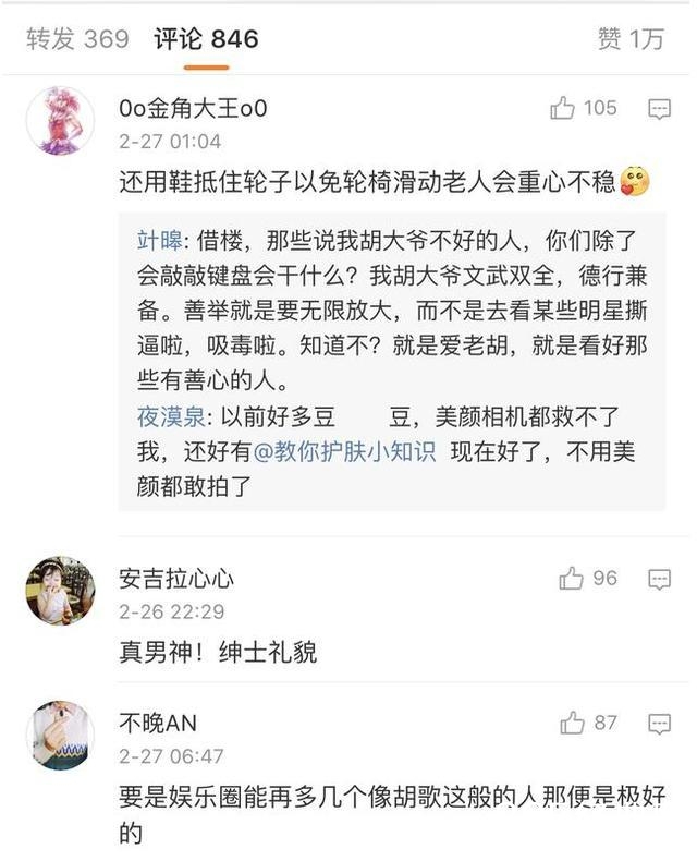 画面中我们可以看到,胡歌很贴心的扶着老前辈秦怡,并且为了固定住轮椅,用自己的皮鞋去抵住轮椅。胡歌这一小小举动折射出来的作为演艺工作者的素质,涵养。胡歌这一举动,估计有很多网友都会路转粉了。