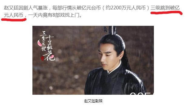 据称赵又廷夜华之前的身价是破亿台币,但夜华后身价跳破亿元人民币!