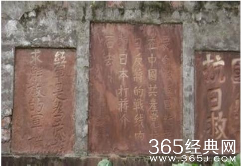 1935年6月至1936年2月,红一方面军经雅安在甲金山下的达维与红四方面军会师,红四方面军因走错路线南下,红一方面军继续北上,经过上里境内驻扎在此,为宣传党的方针、政策,在此刻了七十多条如上的标语,被当地人们保存起来。