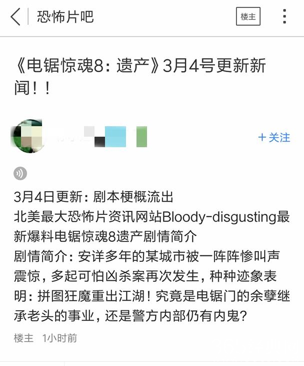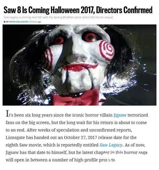 《电锯惊魂8遗产》或于2017年10月26日上映。