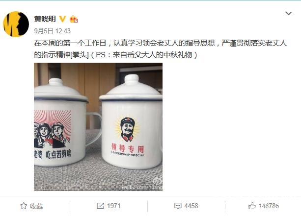 其实,黄晓明的微博也是他宠爱妻子的虐狗圣地啊,曾经他就晒出两个杯子~