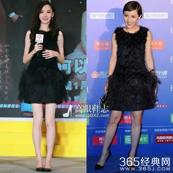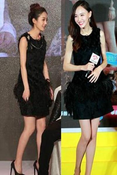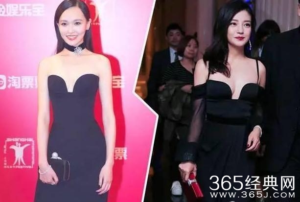 唐嫣撞衫郭采洁同款黑裙唐嫣是美美女神范,郭采洁是酷酷御姐范,糖糖甜美取胜但相差不远。