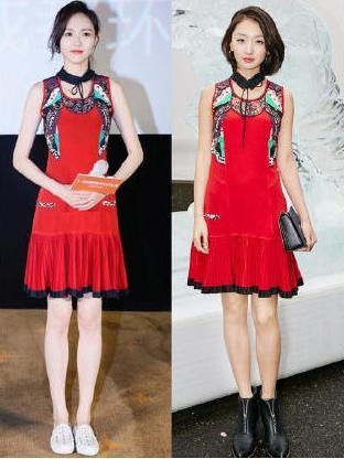颜值一般穿衣也就有些难度,王珞丹从头到脚撞衫唐嫣,输的也是从头到脚。