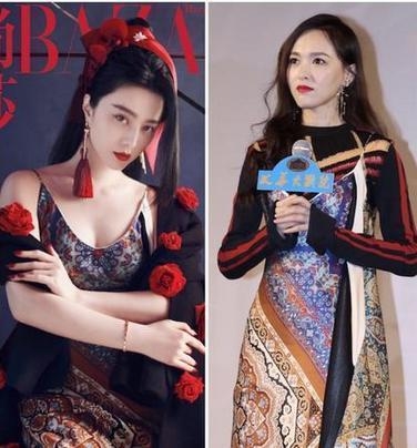 是产后还未恢复吗?梁咏琪撞衫唐嫣宽广的身材太明显,唐嫣轻松取胜。