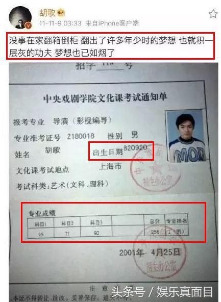 网友发现,当年的胡歌,成绩还是蛮不错的。